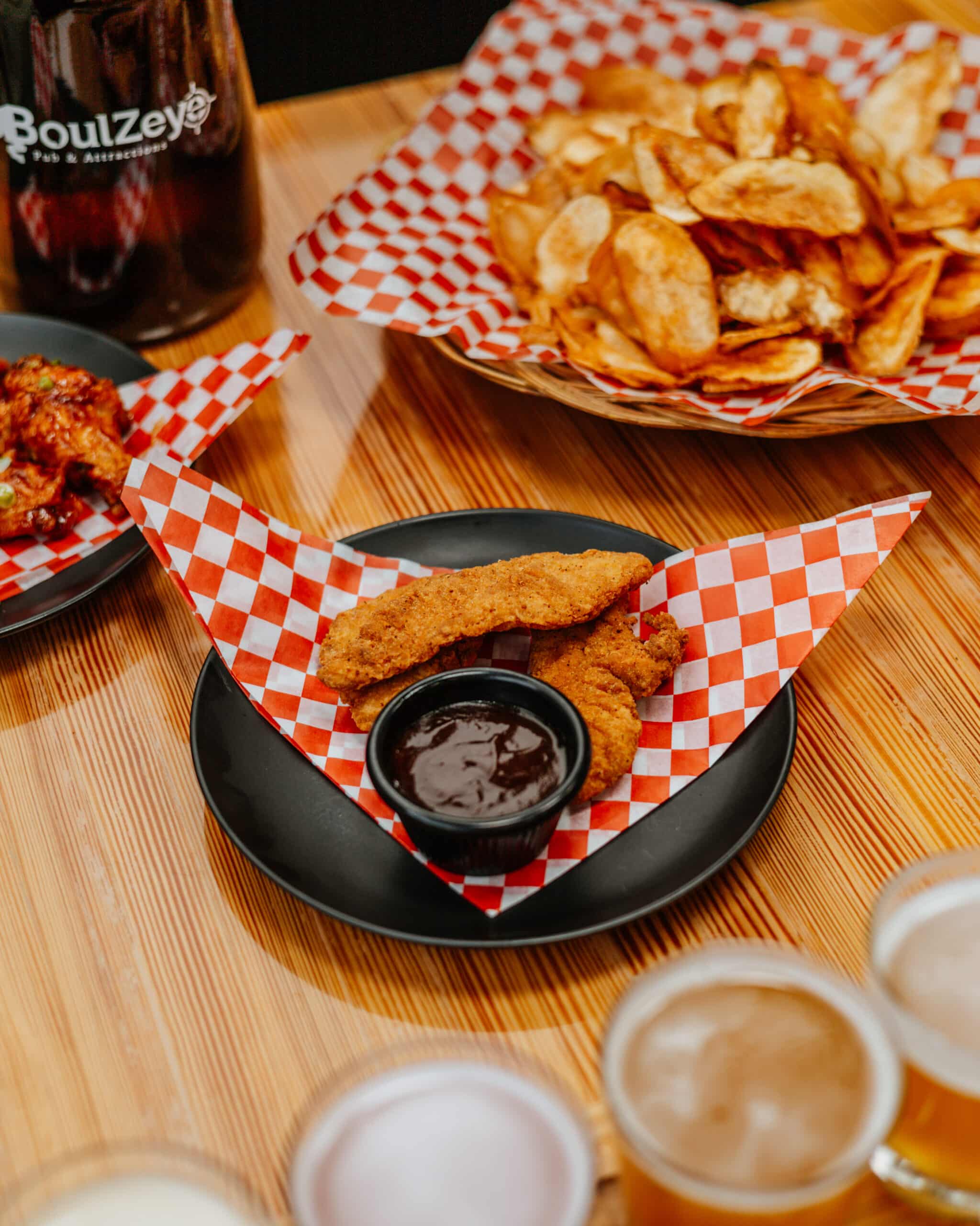 In Pointe-aux-Trembles, we welcome you in a warm and friendly atmosphere, perfect for a meal with friends, a corporate party or a family outing. Discover our generous food menu, quick lunch specials and group menus for private events. Pair your meal with a craft beer or a house cocktail, then extend the evening with our activities: bowling, laser tag, escape rooms and arcades. Themed lively evenings: happy hours, comedy, DJ, live bands and guest artists.